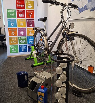 Mit dem "oekotrainer" kann jeder -ob klein oder groß- selbst erleben, wie viel Energie es kostet, 100 ml Wasser zu erhitzen oder Glühbirnen zum Leuchten zu bringen oder eine Seifenblasenmaschine in Gang zu setzen.